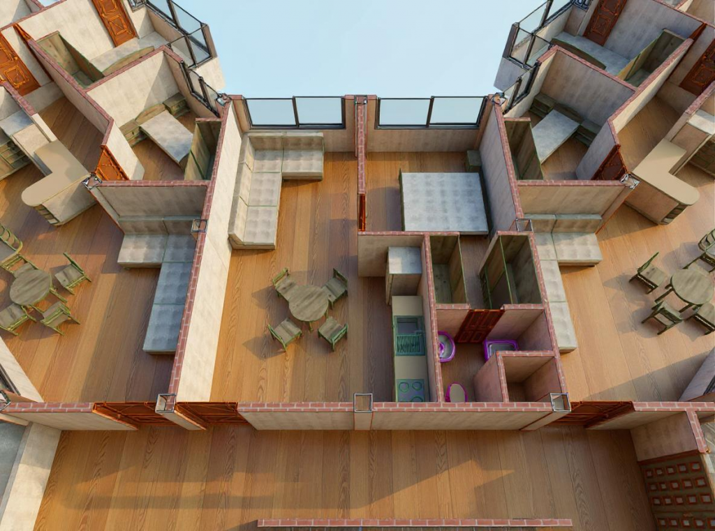 Este departamento familiar está diseñado para ofrecer comodidad y un amplio espacio en una superficie total de 80 m². Su distribución integra un área social luminosa de sala y comedor con una moderna cocina estilo americano, que se entrega completamente equipada. El área de descanso se compone de un dormitorio máster con baño privado y dos dormitorios adicionales que comparten un segundo baño completo.